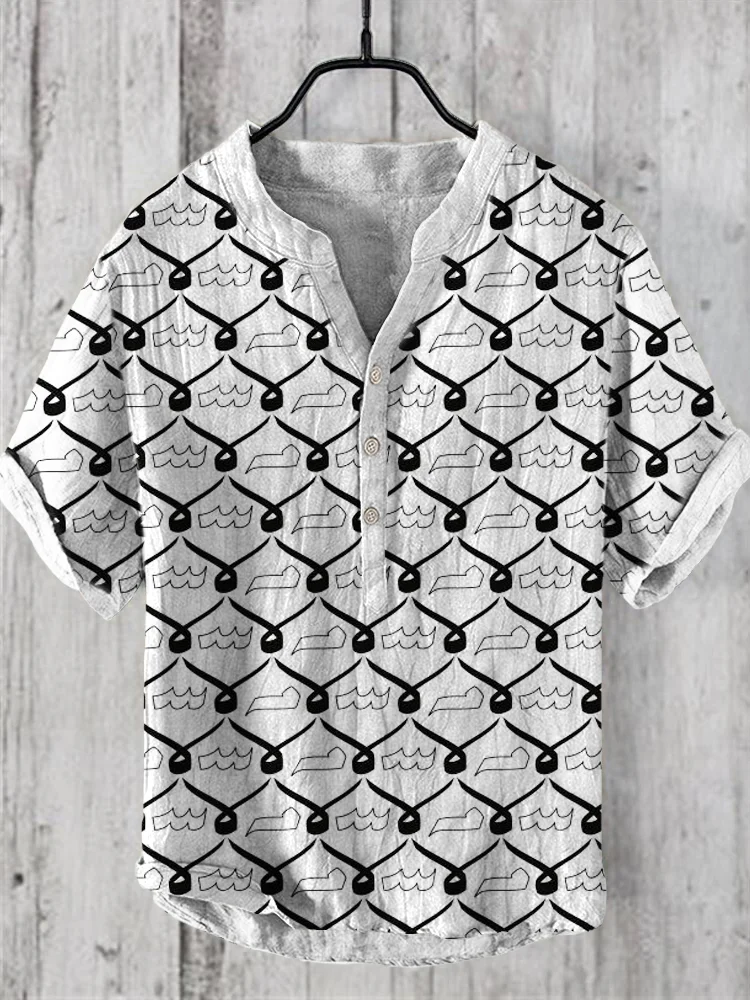 Arabic "salam" (peace) Print Linen Men's V-Neck Shirt