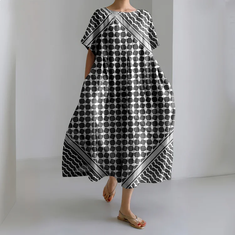 Be Freedom And Hoping Peace Forever Kufiya Inspired Linen Blend Maxi Dress