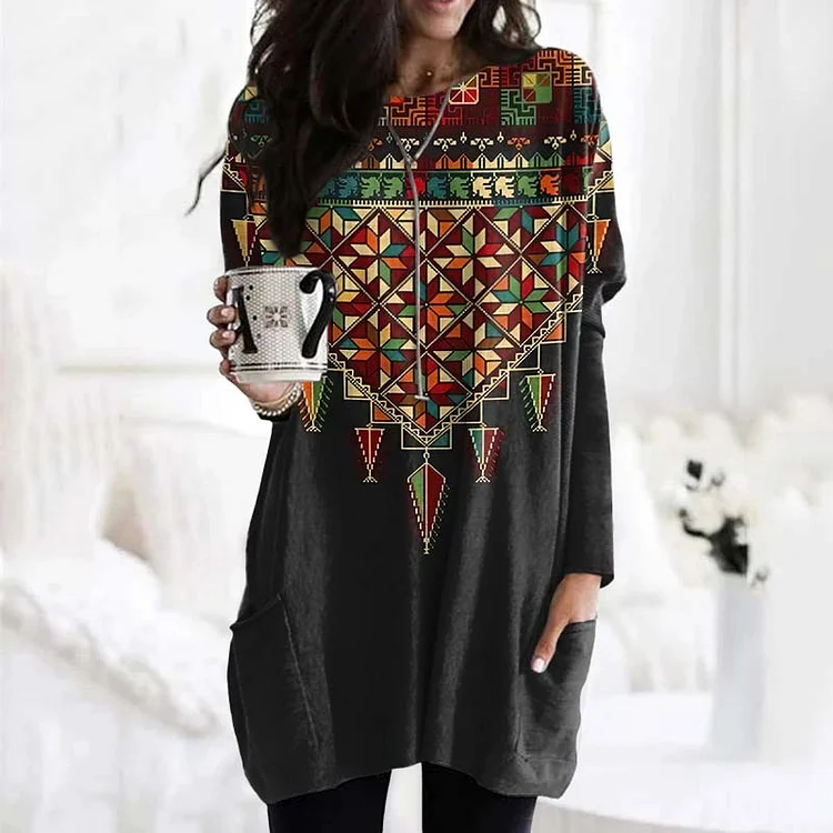 Be Freedom And Palestinian Inspired Pattern Pocket Comfy Tunic