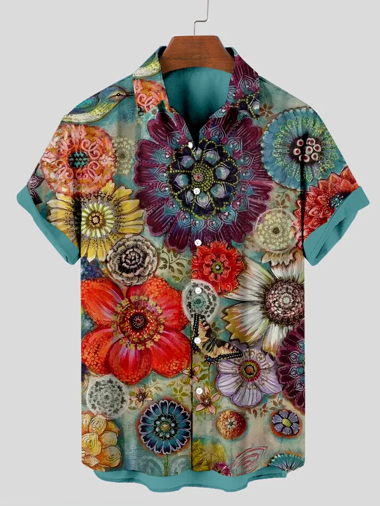 Blue Bird Boho Floral Art Linen Blend Comfy Shirt