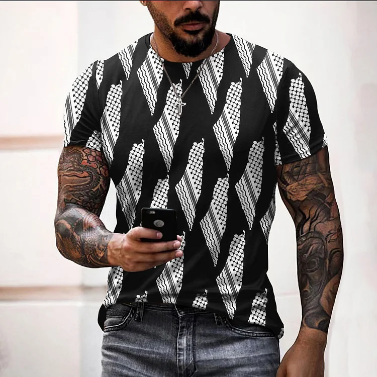 Free Palestine Print Crew Neck Short Sleeved T-Shirt