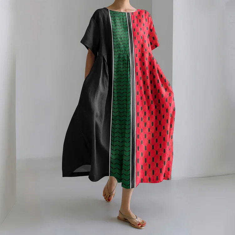 Free Palestine Printed Short Sleeve Midi Dress