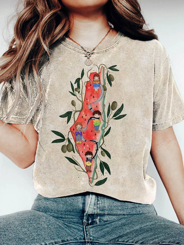 Free Palestinian Print Women's Casual Vintage T-shirt