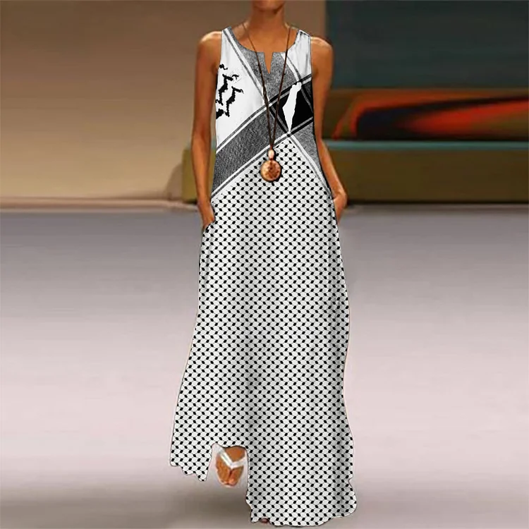 Freedom Ethnic Palestinian Graphics Print Sleeveless Maxi Dress