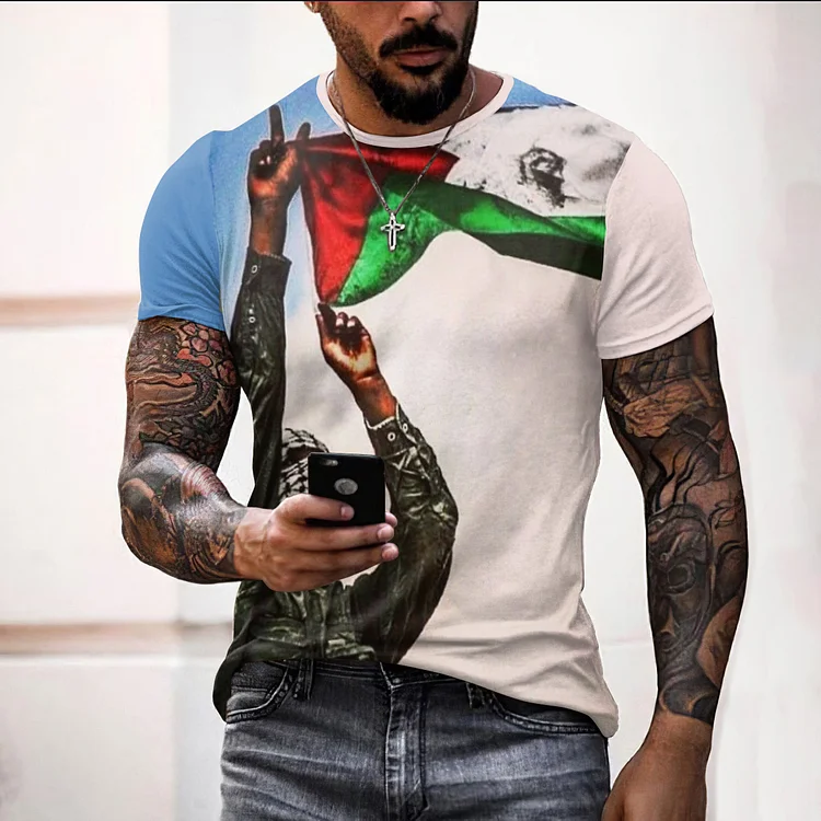 Freedom Palestine Print Short Sleeve Casual T-Shirt