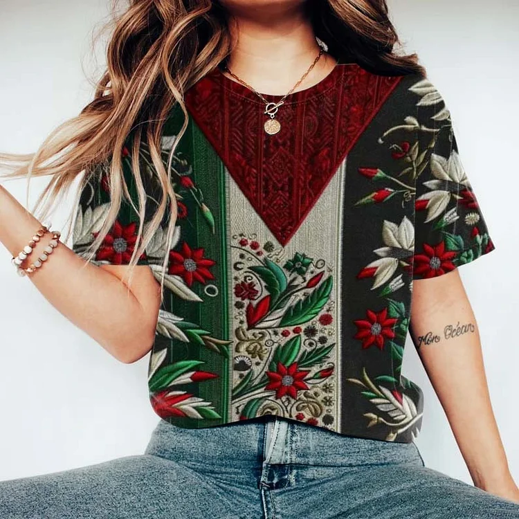 From The River To The Sea Floral Flag Embroidery Inspired Painting Cotton Blend T-Shirt
