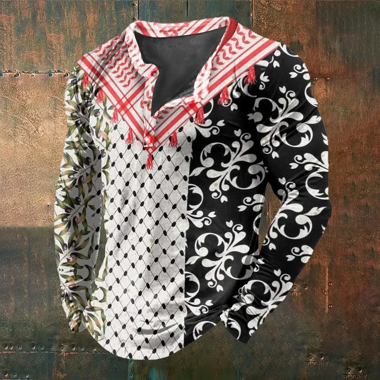 I Hope Peace Forever And Be Freedom Print Casual Long Sleeve Henley Shirt