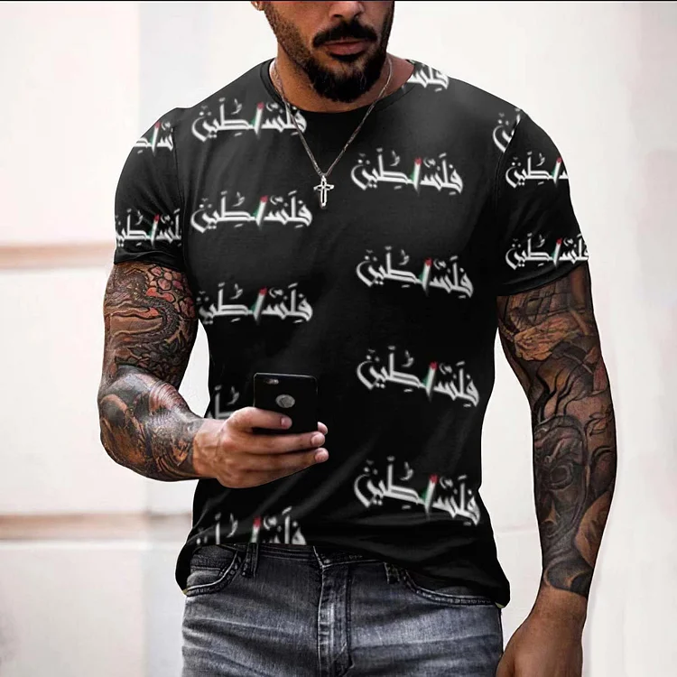 I Hope Peace Forever And Freedom Kufiya Print Casual T-Shirt