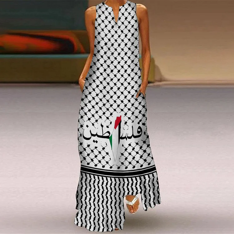 I Hope Peace Forever And Palestine Kufiya Inspired Pattern Flowy Maxi Dress