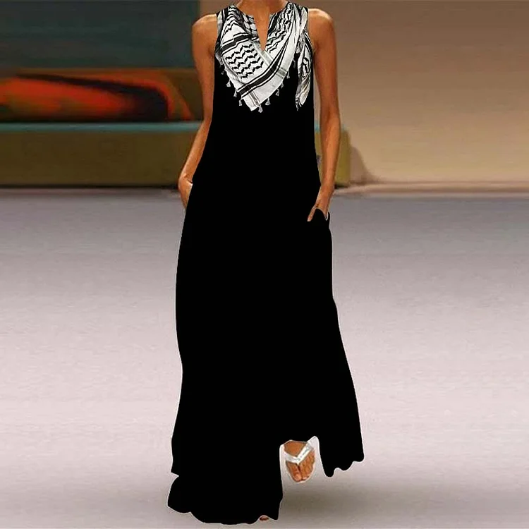 I Hope Peace Forever And Palestine Shemagh Inspired Flowy Maxi Dress