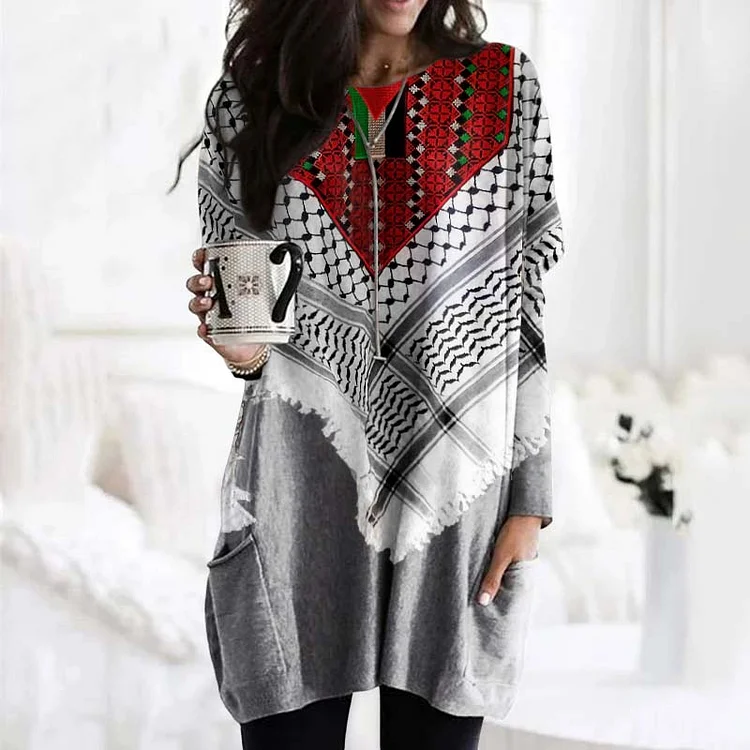 I Hope Peace Forever And Palestinian Inspired Pattern Pocket Comfy Tunic
