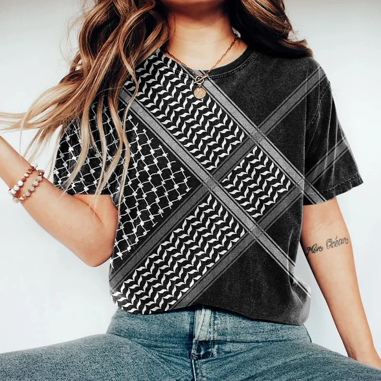 I Hope Peace Forever Kufiya Inspired Cotton Blend T-Shirt