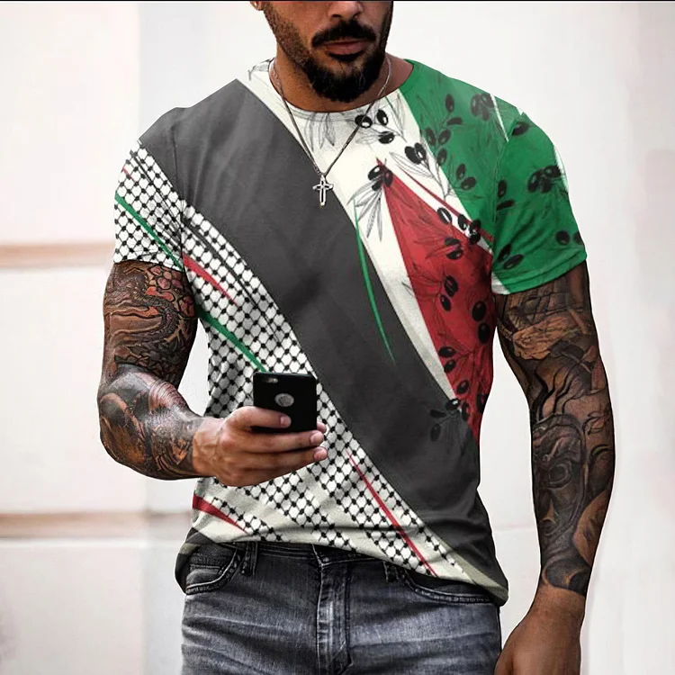I Hope Peace Forever Palestinian Flag Print Crew Neck T-Shirt