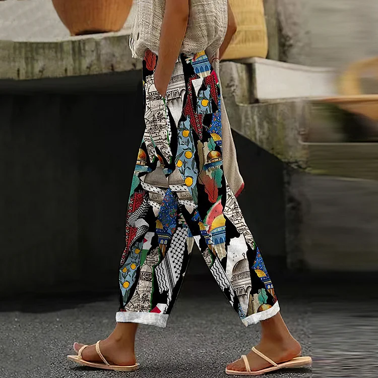I Hope Peace Forever Print Casual Pants