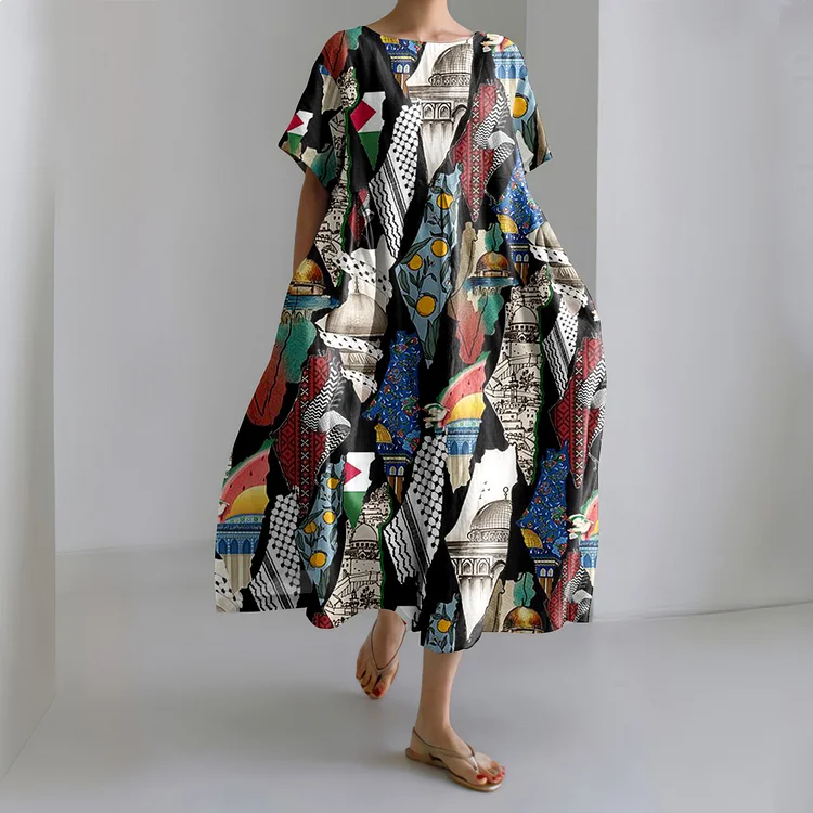 I Hope Peace Forever Print Short Sleeve Midi Dress