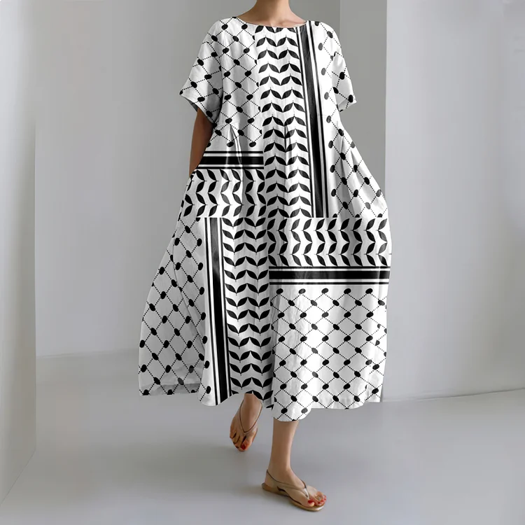 I Hope Peace Forever Print Short Sleeves Midi Dress