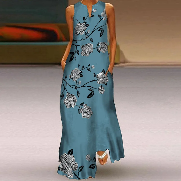 Keffiyeh Roses Inspired Pattern Flowy Maxi Dress