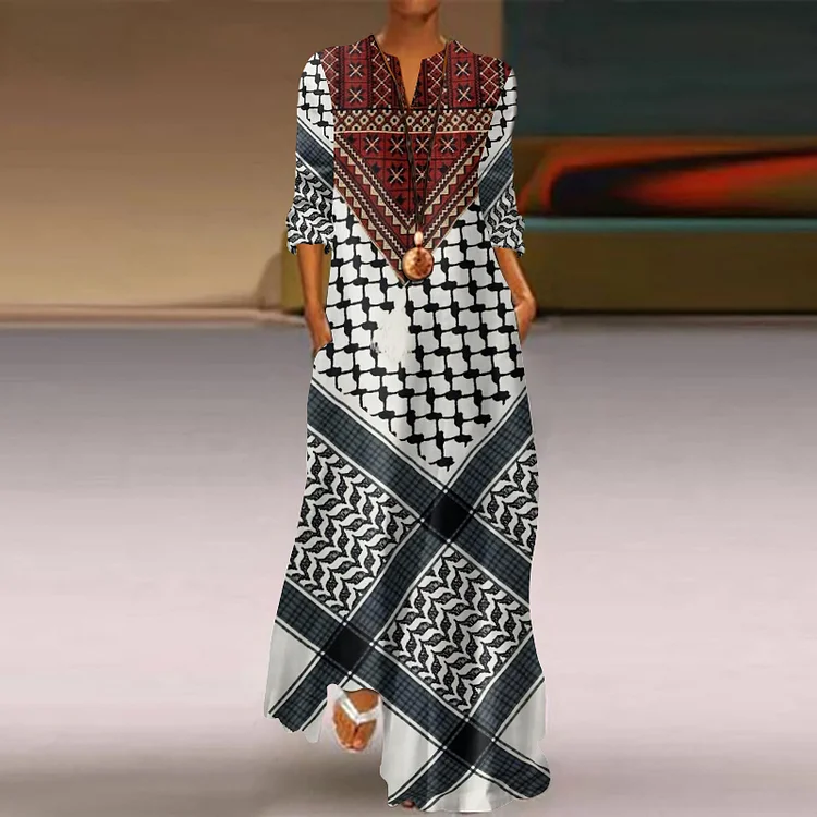 Kuffiya Inspired Tassels Flowy Maxi Dress