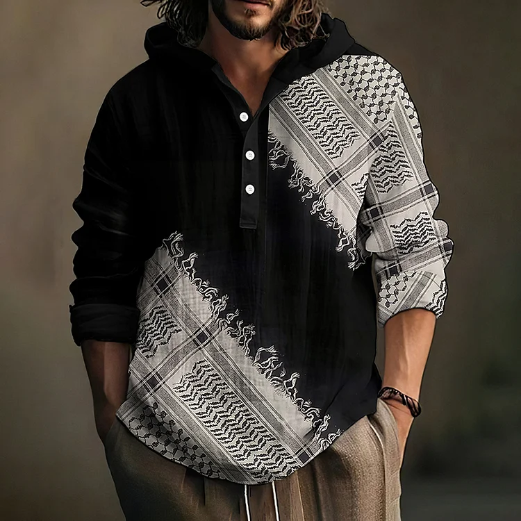 Men's Be Free And Peace Forever Print Casual Linen Hooded Shirt