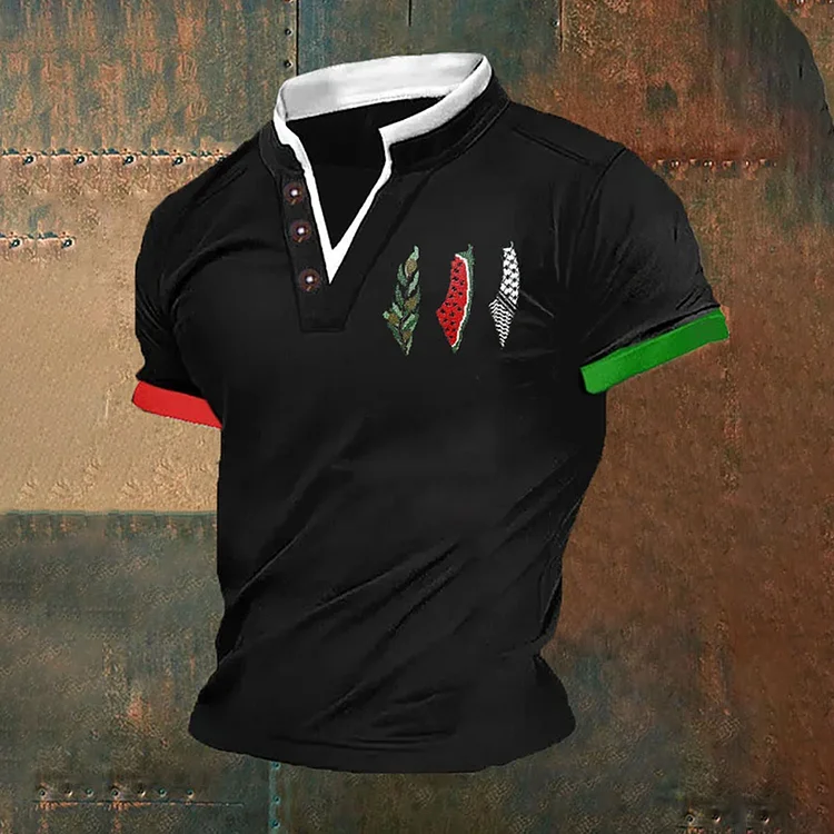 Men's Freedom And Hope Peace Forever Casual Stand Collar T-Shirt
