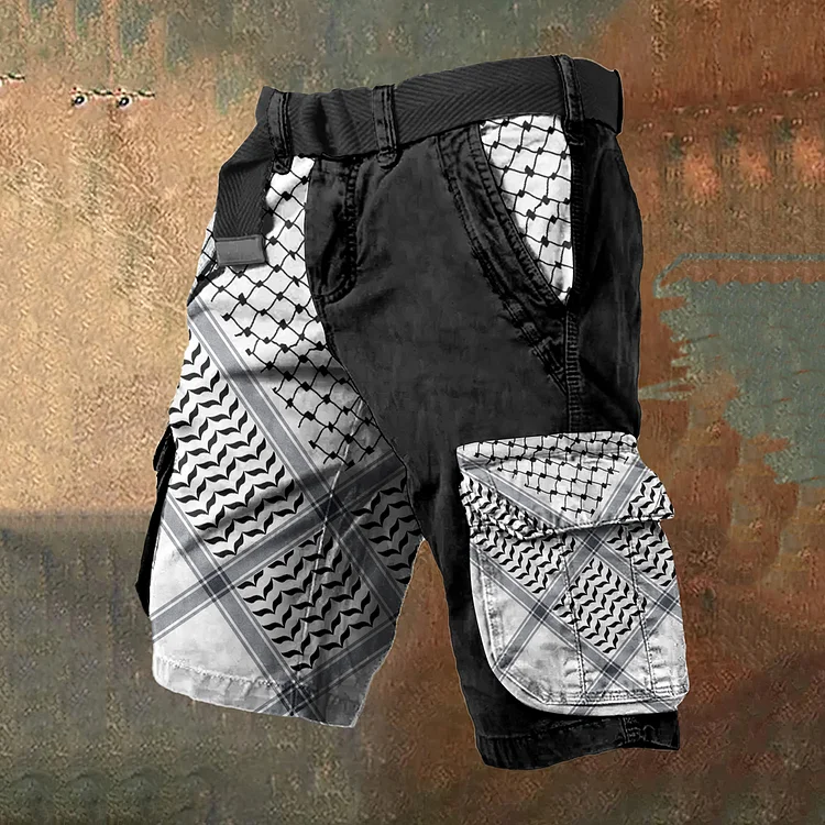 Men's Hope Peace Forever Kufiya Inspired Cargo Shorts (Belt Not Included)