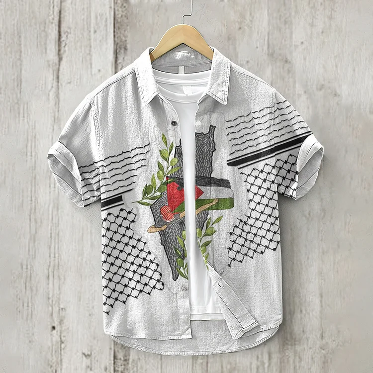 Men's Hoping Peace Forever Pattern Linen Blend Shirt