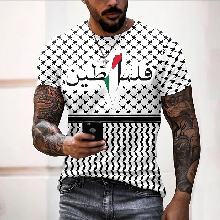 Men's I Hope Peace Forever And Palestine Kufiya Inspired Print Casual T-Shirt