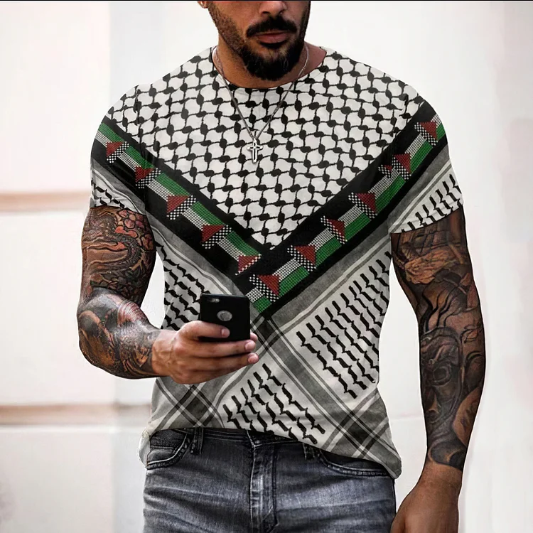 Men's I Hope Peace Forever Kufiya Inspired With Flag Print Casual T-Shirt