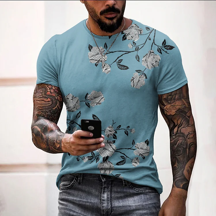 Men's Keffiyeh Roses Inspired Print Casual T-Shirt
