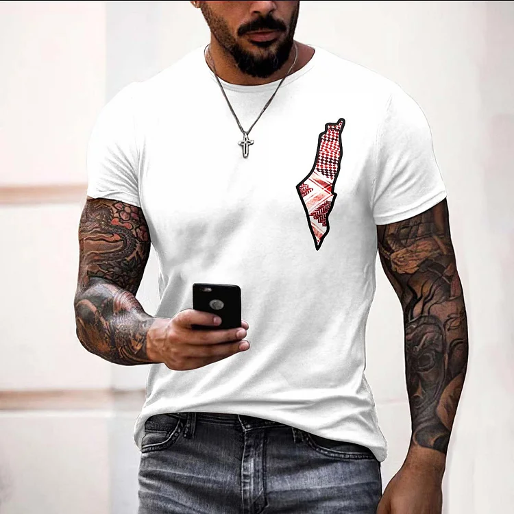 Palestine Keffiyeh Map And I Hope Peace Forever Print Casual T-Shirt