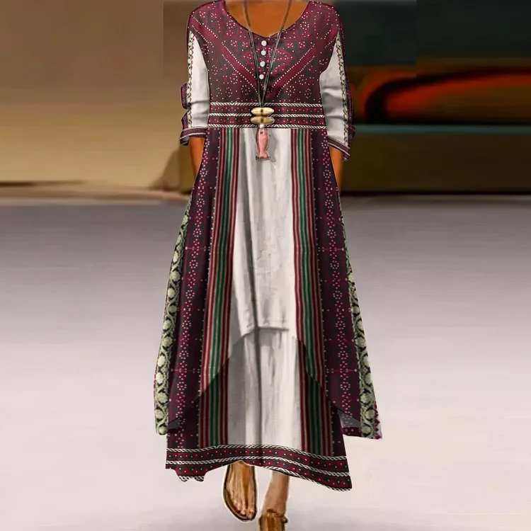 Palestinian Ethnic Geometry Embroidery Tatreez Flowy Maxi Long Dress