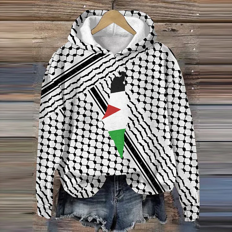 Palestinian Freedom Print Long Sleeve Hoodie
