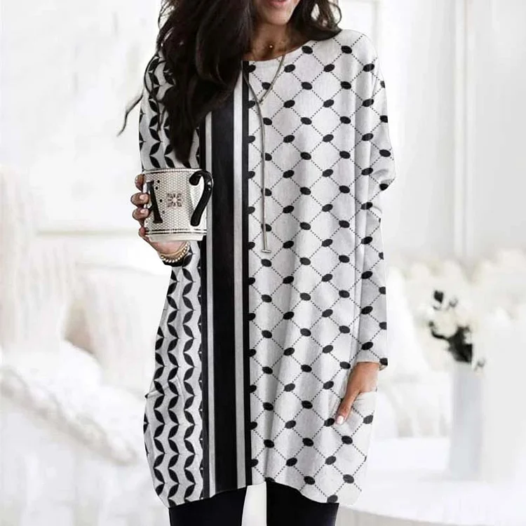Palestinian Keffiyeh In All Black Art Pattern Pocket Comfy Tunic