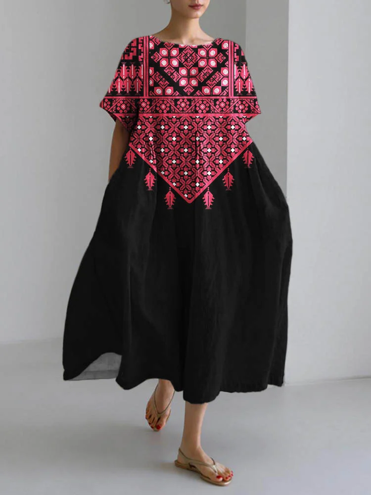 Palestinian Tatreez Cross Stitch Embroidery Art Linen Women's Long Dress