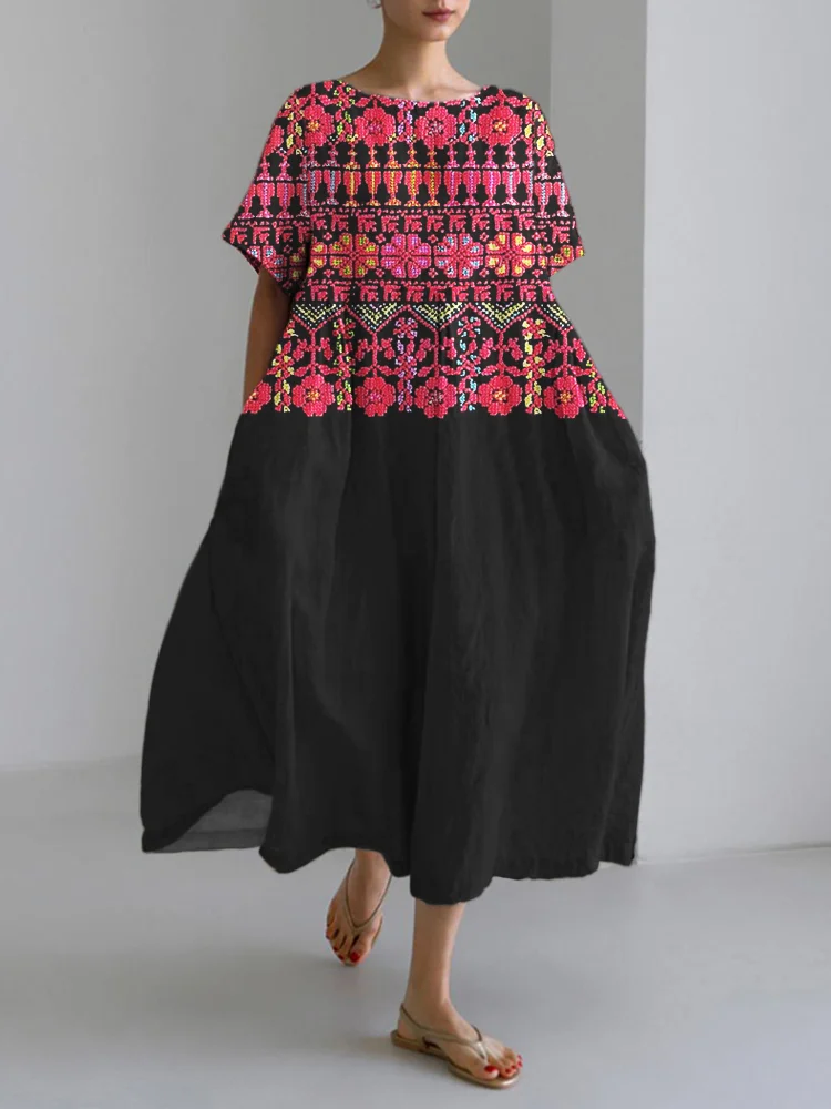 Palestinian Tatreez Cross Stitch Embroidery Art Linen Women's Long Dress