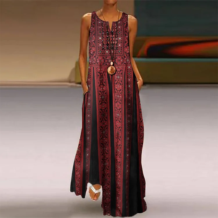 Palestinian Thobe Thob Embroidery Tatreez Red Sanabel Pattern Flowy Maxi Dress