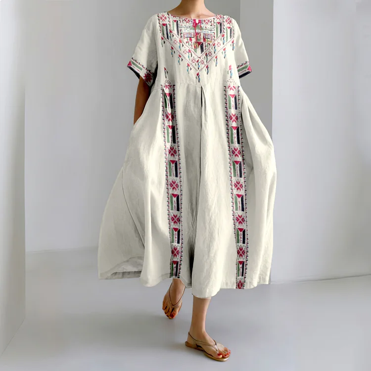 Retro Hoping Peace Forever Linen Blend Maxi Dress