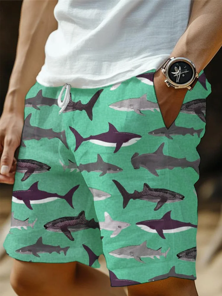 Shark Ocean Element Men's Linen Shorts