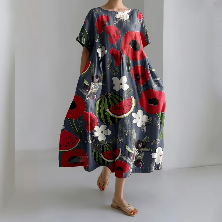 Watermelon & Flowers I Hope Peace Forever Linen Blend Maxi Dress