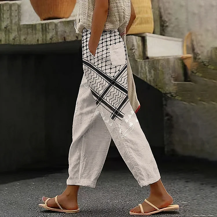 Women We Will Be Free And Peace Forever Print Linen Blend Casual Pants