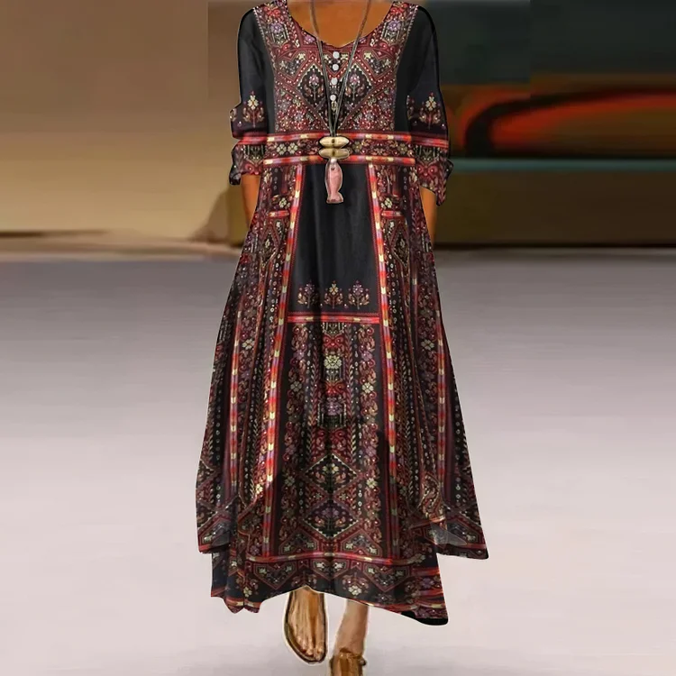 Women's Palestine Ethnic Inspired Flowy Maxi Long Dress