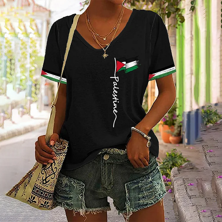 Women's Palestinian Freedom Print V-Neck Casual T-Shirt